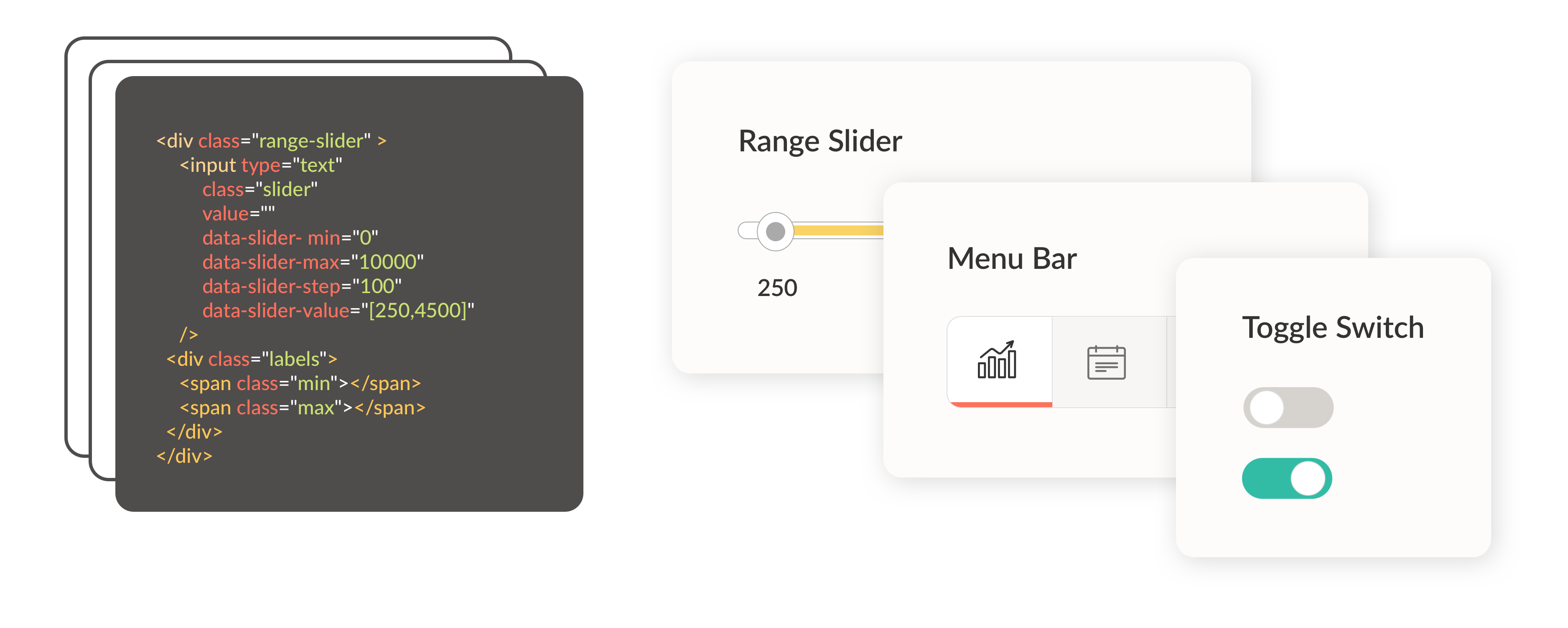 - CSS only - use whatever javascript framework you want to add interactivity (Angular, React, Vue, vanilla Javascript, Jquery – whatever).